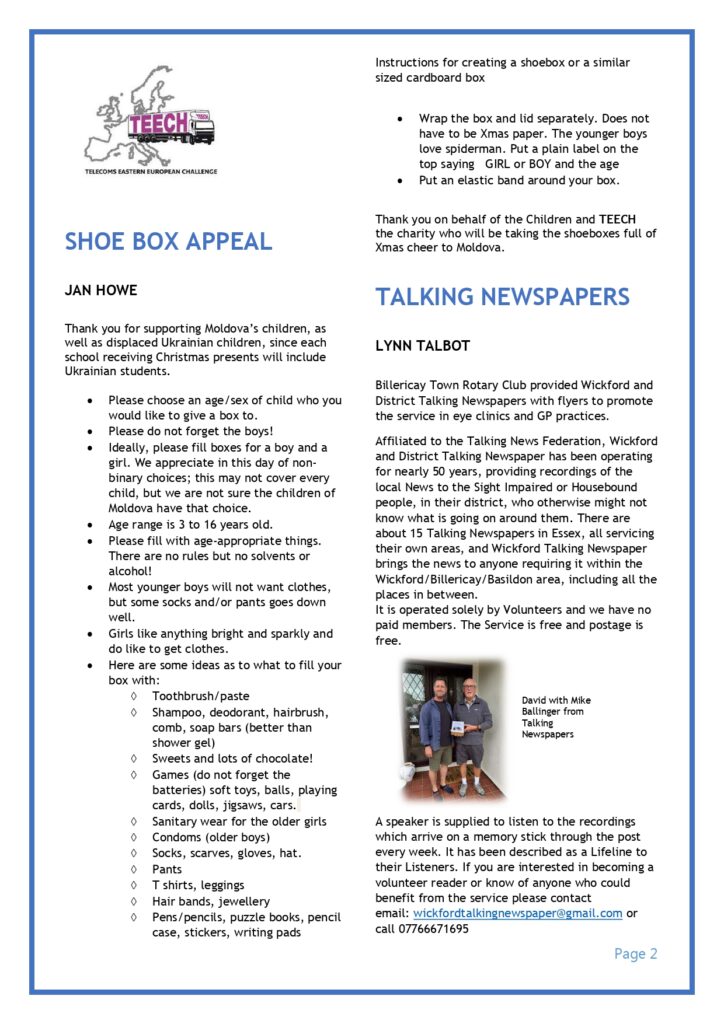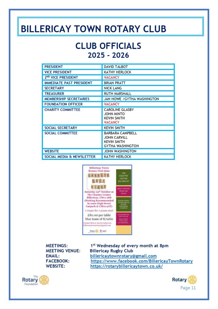 For my year I want to continue the splendid work of our past presidents, continue to work with the other two Rotary clubs in Billericay and above all, have fun in the giving of service for others. We are always looking for new members and so if you have ever thought about giving back, building friendships, and making a difference, we would love to welcome you. Please Contact Us.