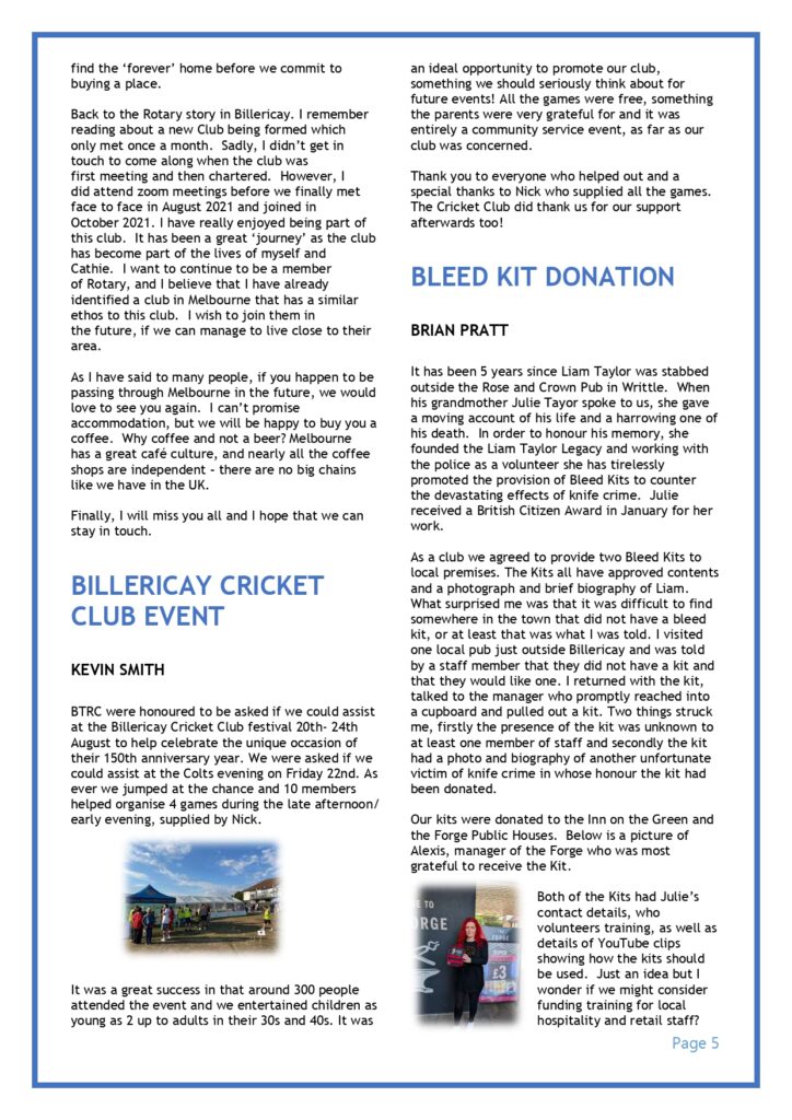 When Billericay Town Rotary began, and needed somewhere to meet, I offered to open the bar for them at Billericay Rugby Club, providing them with a regular meeting place. And then, ‘well, if you’re opening the bar each meeting you might as well join’. Seeing the enjoyable way Billericay Town went about fundraising for worthy causes both home and abroad, enticed me in to giving a bit more time and getting further involved.