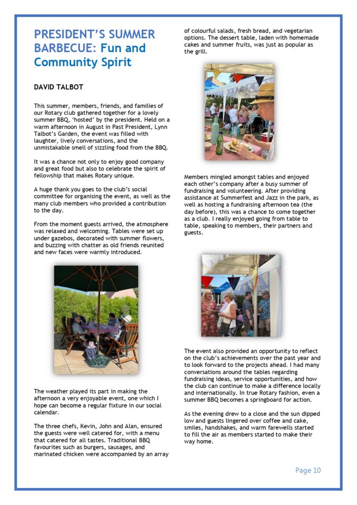Our club is an open and inclusive place, that I like to think, has adapted Rotary values to a modern approach to club membership. With monies raised through our funding raising events, we can go on to support many wonderful local and international charities as well as Rotary’s own charity – Foundation.
